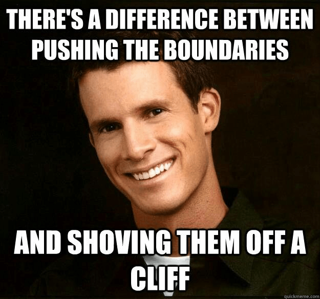 It’s okay to push boundaries if both parties are into it. I’ve asked Tops to push mine before, with a lot of careful negotiation first. It was fun, I’m glad we got to do it. I am consistently touched and humbled by the generous willingness of some Tops to experiment with pressing me a little to see if I expand.