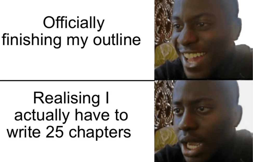 Endings are visible. The other book mentioned in the previous paragraph actually does have an outline, and I happen to think it’s a good one. The problem is this: I didn’t write the outline until I got to the second-to-last completed chapter. That was the point where my characters had formed the adventuring party and departed the main town to escape the villain. When I got there, I realized I didn’t know what I wanted to happen next, so I stopped writing the book and started writing the outline. The outline for this particular book is about ten pages long, and I pretty much wrote the entire climactic scene, sans dialogue. I know it’s going to take me at least 100,000 more words to get there (this is a high fantasy novel), but at least I know how it ends… and how much I’m going to love seeing it written out in its entirety once I get there. Someday. Maybe.