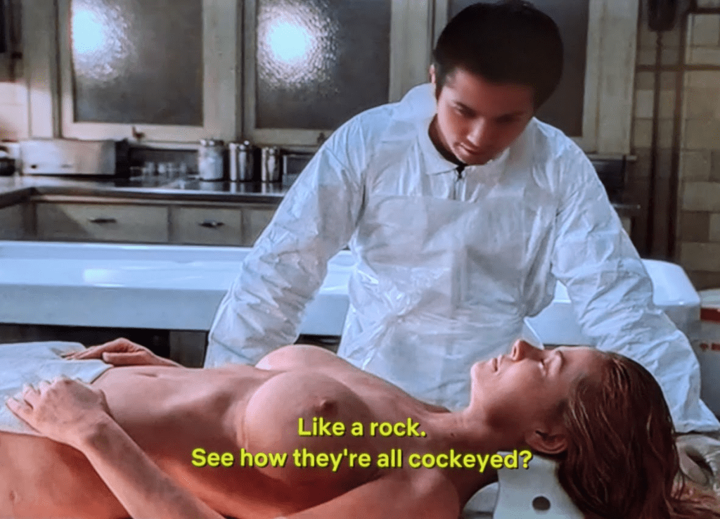 What I mean is: did the crew make a casting call for women with suboptimal boob jobs? Or did they get the makeup team to create a pair of fake boobs and put them onto the actor’s chest?