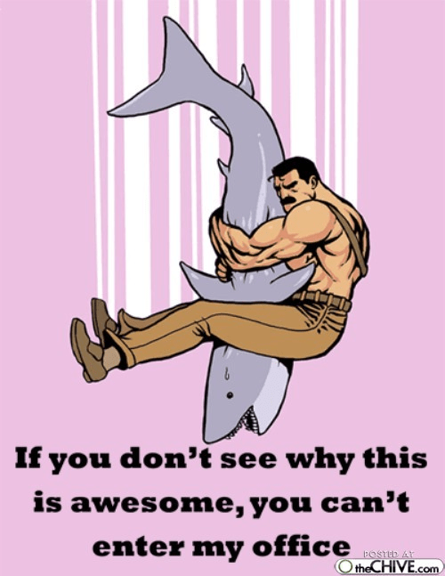 Given that I work with engineers, most of whom are nerds, I figure this will go over pretty well. My favorite part is that the shark is perspiring in fear.