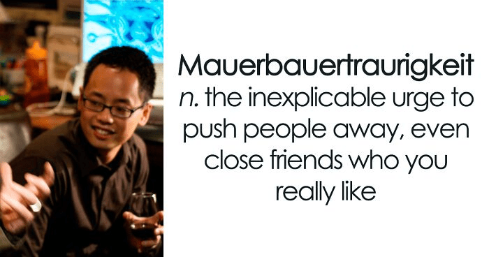 Ah, German. A language of portmanteaus. This one literally means “the sadness of the wall-builder”, which is a beautiful way to say it.