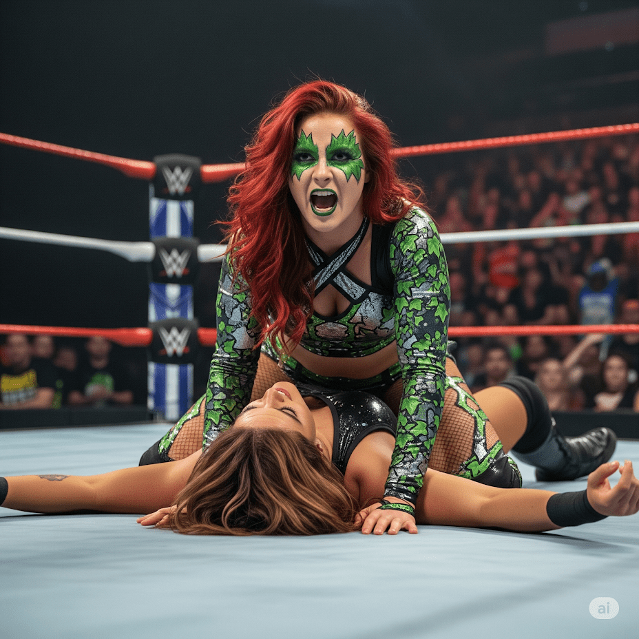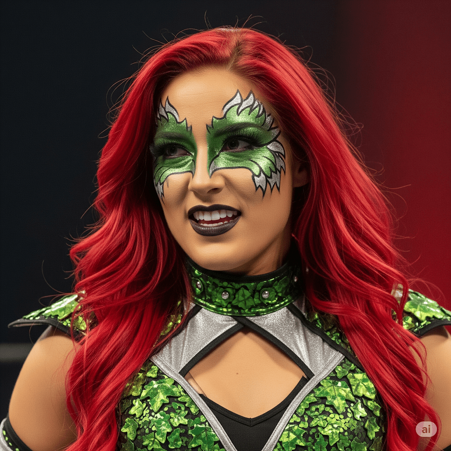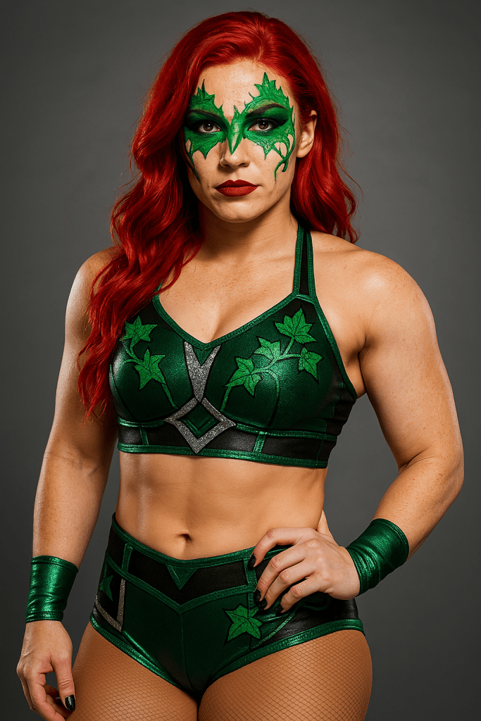 One evening I was stuck in one of those weird little pockets of time (thank you, Mosca, for that part of your ER fanfic that I will never forget) and I decided to play around with AI. I asked Gemini to show me a picture of a red-haired female professional wrestler dressed like Poison Ivy from Batman. I think it did a pretty good job.