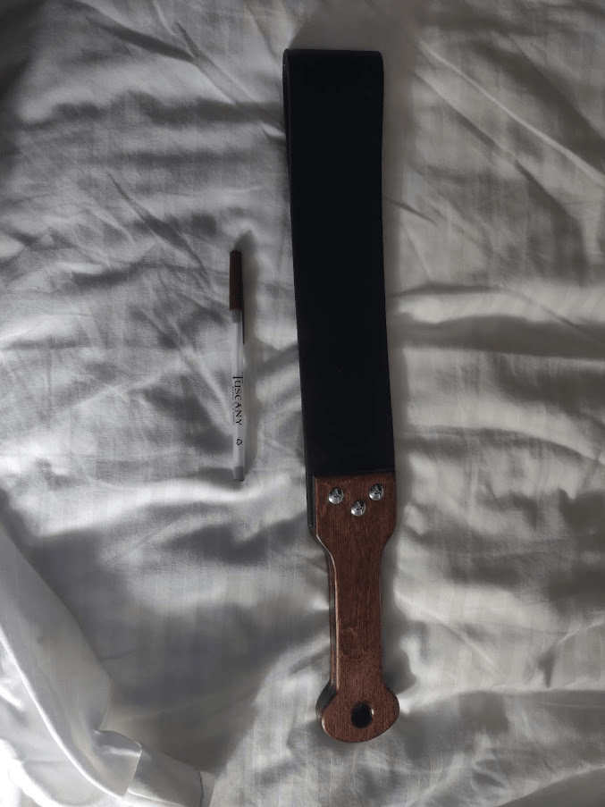 Some months ago — maybe years now — I put my Wood Worx domestic discipline strap in the “I don’t really use this anymore” box because I wasn’t happy with the results when I wielded it. I wasn’t consistently getting a good crack! sound and the impacts weren’t landing as I’d hoped.