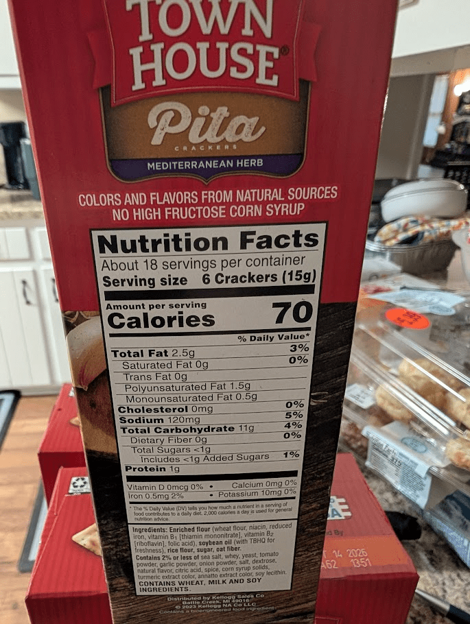 I recently bought these crackers on sale at the grocery store without looking at the nutritional information. I figured a serving would be 10-12 crackers, which is what it’s been on other cracker boxes I’ve eaten lately, and it would come out to 140-150 calories. Still a lot for one small serving, but at least I would’ve expected that.